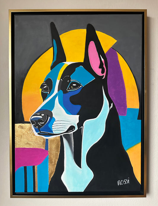 Bildtitel: „The Doberman“, Mischtechnik, 50 x 70 cm, auf Leinwand, gerahmt.