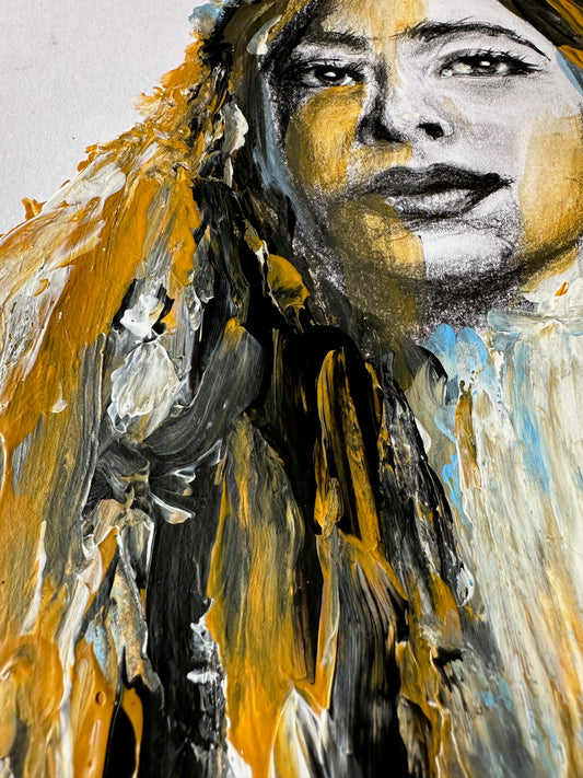 Bildtitel: „Ukrainisches Mädchen“, Mischtechnik, Künstlerpapier, 21x30 cm, gerahmt.