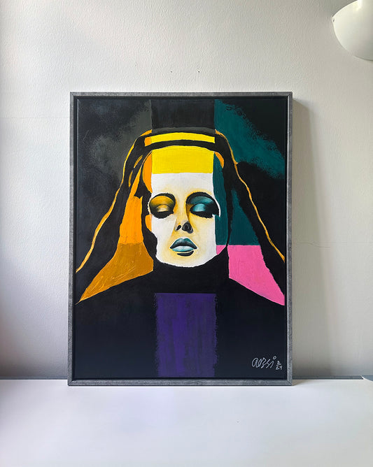 Bildtitel: „Madame Noir“, Acryl, Format: 40 × 50 cm, auf Leinwand, gerahmt.