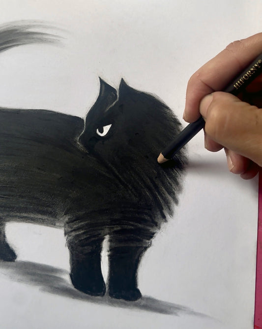Bildtitel: „Das Mausloch“, Kohlezeichnung, 28,5 x 41,5 cm
