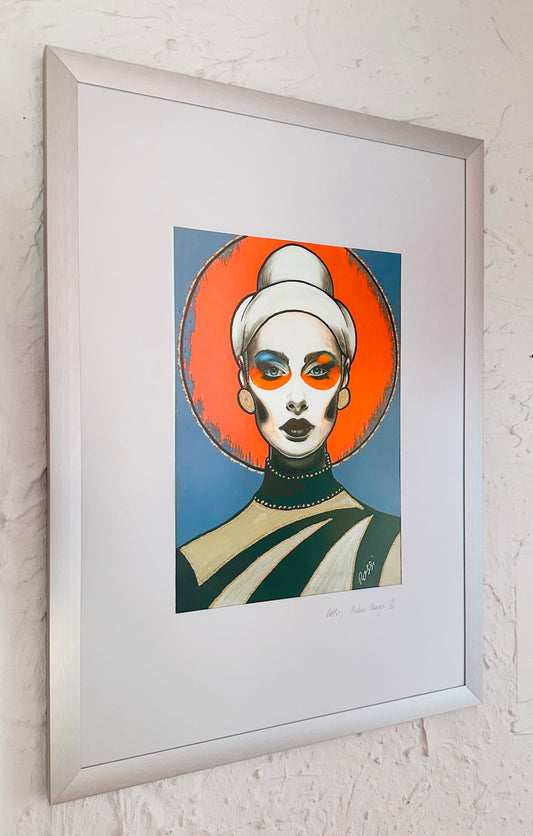 Bildtitel: „Madame Orange“, Mischtechnik, 29,7 x 42,0 cm, Künstlerpapier, gerahmt