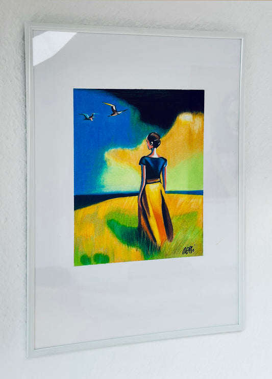 Bildtitel: „Frau farbenfroh 2.0“, Mischtechnik, Format: 30 x 40 cm, gerahmt.