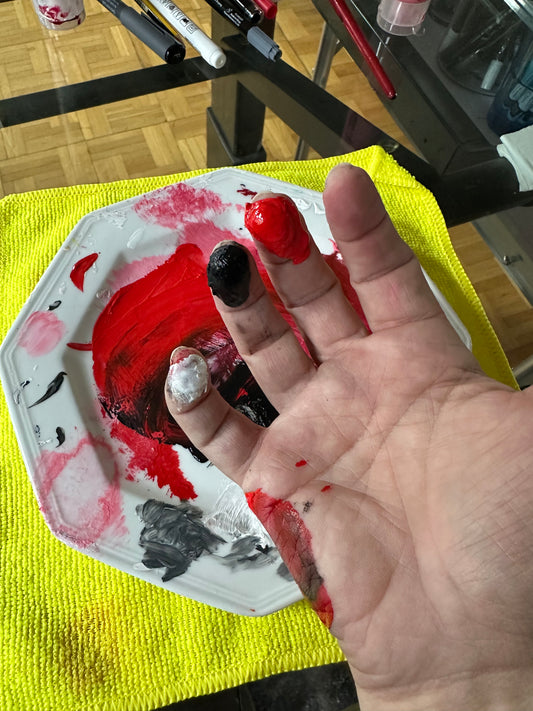 Bildtitel: „Treue, mutig kämpfen, Frieden“, Fingermalerei, Format: 40 x 50 cm, auf Leinwand.